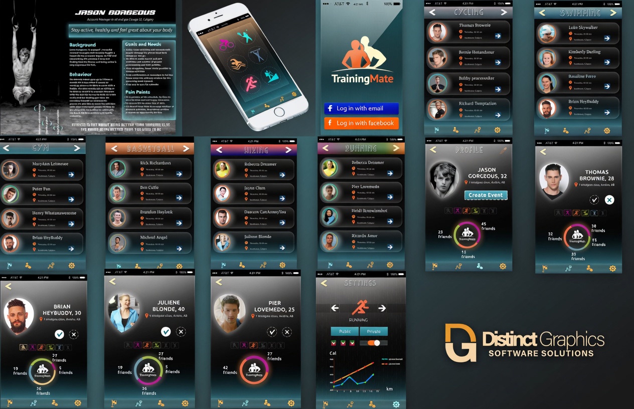 I designed the full UI for Training Mate — a mobile app that helps users discover local fitness activities by sport category, connect with training partners nearby, and track their progress. I developed a detailed user persona to guide every design decision, ensuring the experience matched the real needs of a busy, socially-motivated user
